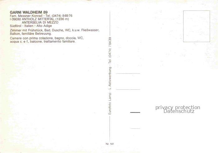 74152833 Antholz Anterselva Mittertal Bolzano IT Garni Waldheim Gaststube Panorama postalisch nicht gelaufen Erhaltung siehe scans [WerneD78] KatCode: 11240