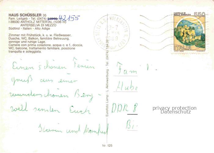 74044208 old postcard Antholz Anterselva Mittertal Bolzano IT Haus Schuessler Panorama Seepartie postalisch gelaufen Erhaltung siehe scans [WerneD78] KatCode: 11240