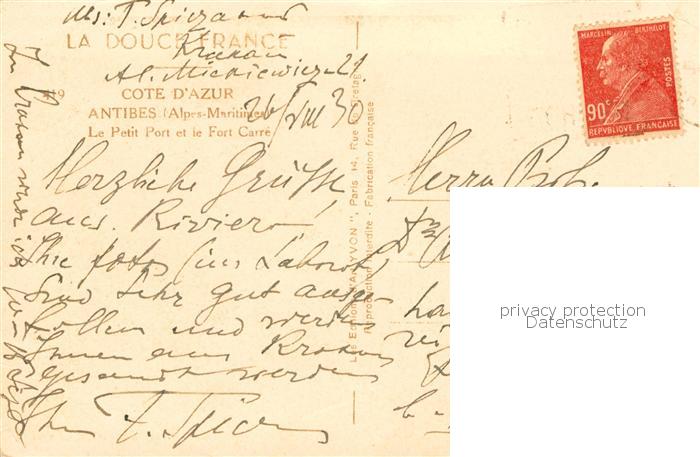13806223 Antibes 06 Alpes Maritimes Le Petit Port et le Fort Carre postalisch gelaufen Erhaltung siehe scans [WerneD78] carte postale Wern Katcode 11170006106004