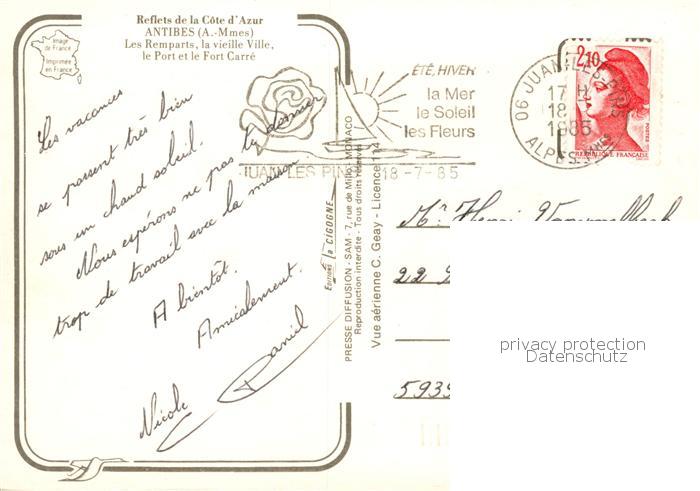 13796789 Antibes 06 Alpes Maritimes Les Remparts la vieille Ville le Port et le Fort Carre Vue aerienne postalisch gelaufen Erhaltung siehe scans [WerneD78] carte postale Wern Katcode 11170006106004
