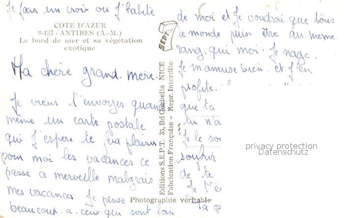 13535627 Antibes Alpes Maritimes Bord de mer et sa végétation exotique postalisch nicht gelaufen Erhaltung siehe scans [FriedD77] KatCode: 11170006106004
