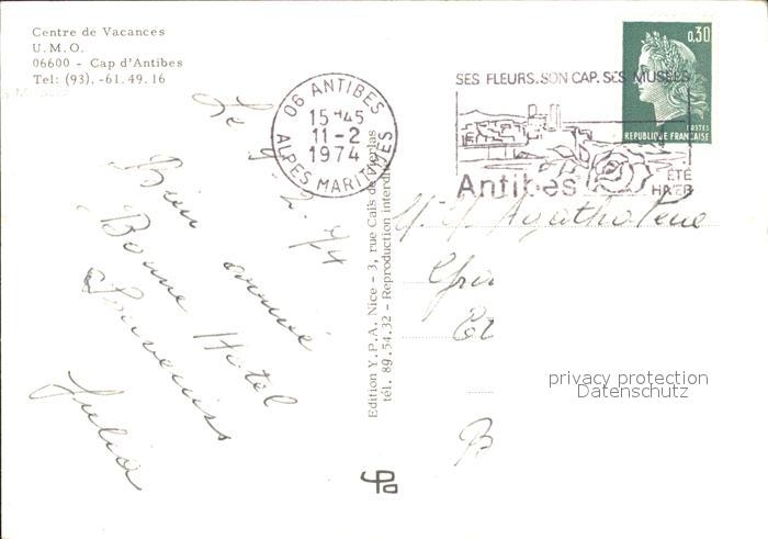 11860511 carte postale Antibes Alpes Maritimes Centre de Vacances U.M.O. postalisch gelaufen Erhaltung siehe scans KatCode: 11170006106004