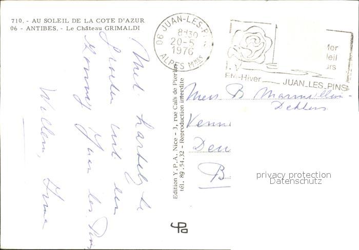 12271936 carte postale Antibes Alpes Maritimes Chateau Grimaldi postalisch gelaufen Erhaltung siehe scans KatCode: 11170006106004