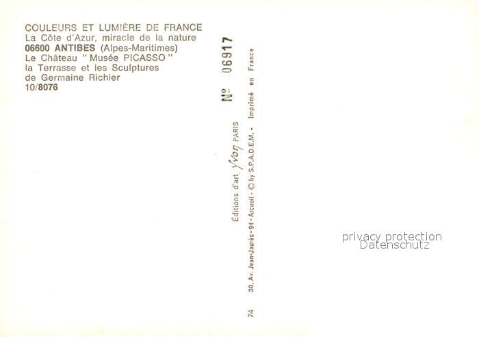 13079079 Antibes Alpes Maritimes Chateau Musee Picasso Terrasse Sculptures de Germaine Richier postalisch nicht gelaufen Erhaltung siehe scans [KathaD81] KatCode: 11170006106004