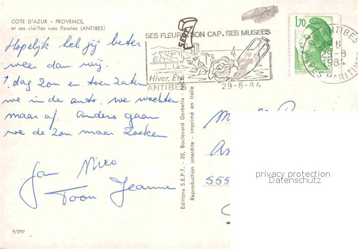 12688168 carte postale Antibes Alpes Maritimes et ses vieilles rues fleuries Cote d Azur postalisch gelaufen Erhaltung siehe scans [FriedD77] KatCode: 11170006106004