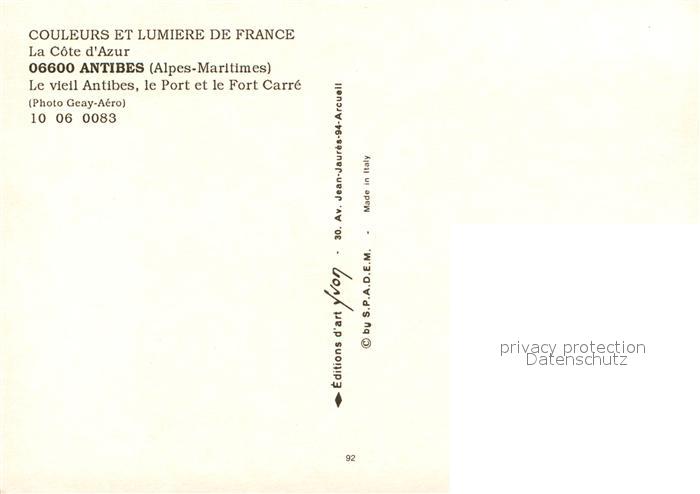 13223052 Antibes Alpes Maritimes Fliegeraufnahme Port et Fort Carré postalisch nicht gelaufen Erhaltung siehe scans [LiesaD40] KatCode: 11170006106004