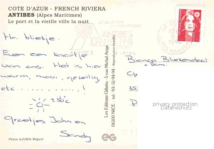 12763738 carte postale Antibes Alpes Maritimes Hafen postalisch gelaufen Erhaltung siehe scans [AndreD76] KatCode: 11170006106004