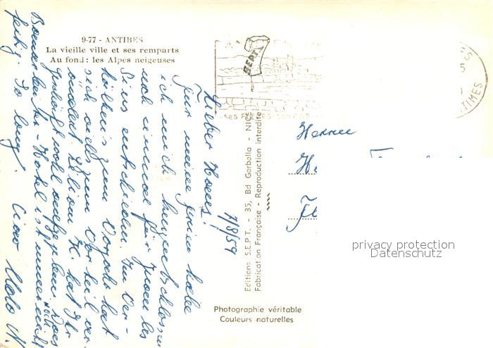13023828 carte postale Antibes Alpes Maritimes La vieille ville et ses remparts Les Alpes postalisch gelaufen Erhaltung siehe scans [WerneD78] KatCode: 11170006106004