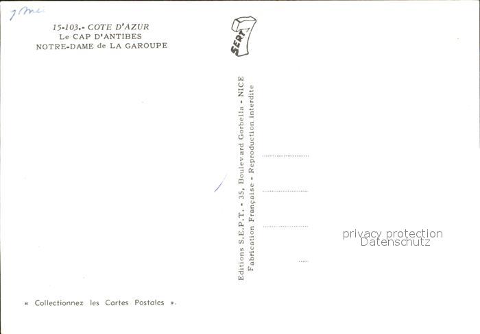 12270503 Antibes Alpes Maritimes Le Cap d Antibes Notre Dame La Garoupe postalisch nicht gelaufen Erhaltung siehe scans KatCode: 11170006106004