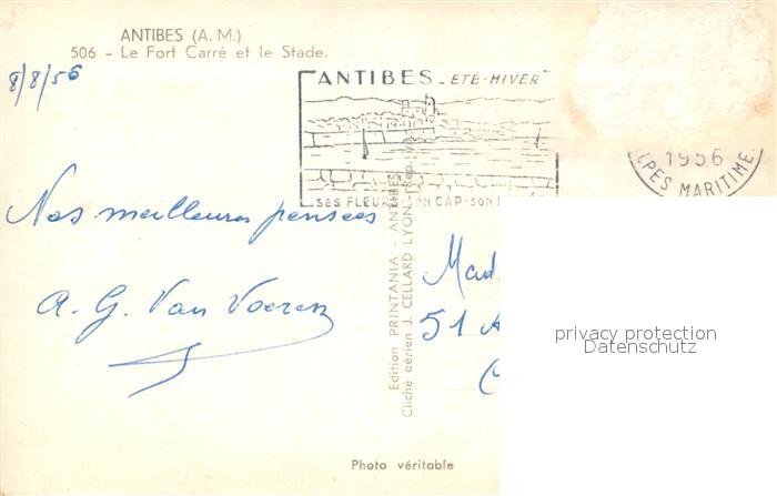 13594249 Antibes Alpes Maritimes Le Fort Carré et le Stade vue aérienne postalisch gelaufen Erhaltung siehe scans [FriedD77] carte postale Frie Katcode 11170006106004