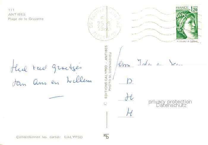 12663984 carte postale Antibes Alpes Maritimes Plage de le Gravette postalisch gelaufen Erhaltung siehe scans [AndreD76] KatCode: 11170006106004