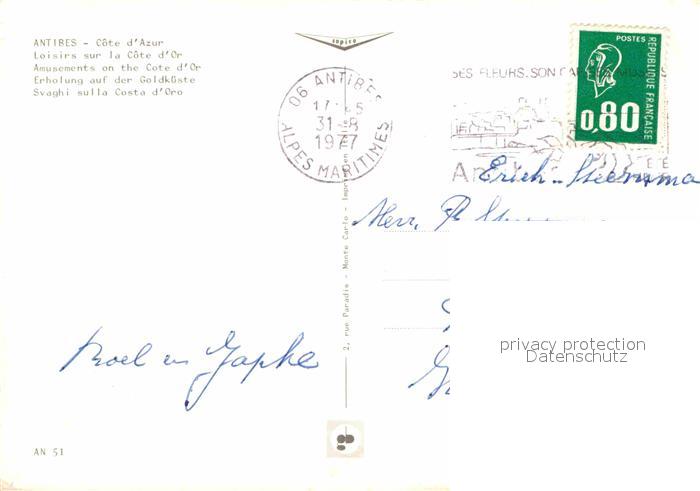 12863311 carte postale Antibes Alpes Maritimes Segelboote postalisch gelaufen Erhaltung siehe scans [LiesaD40] KatCode: 11170006106004