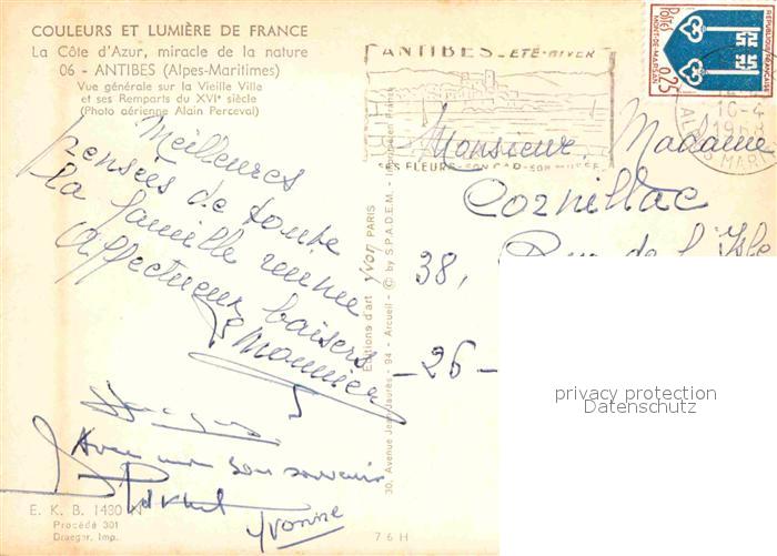 12864092 carte postale Antibes Alpes Maritimes Vue generale aerienne sur la Vieille Ville et ses Remparts postalisch gelaufen Erhaltung siehe scans [WerneD78] KatCode: 11170006106004