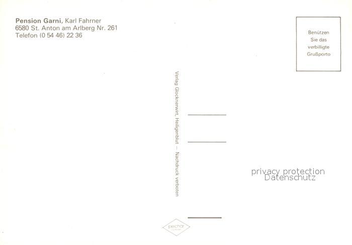73072998 Anton Arlberg St Pension Fahrner Winter postalisch nicht gelaufen Erhaltung siehe scans [KathaD81] KatCode: 11390334070621