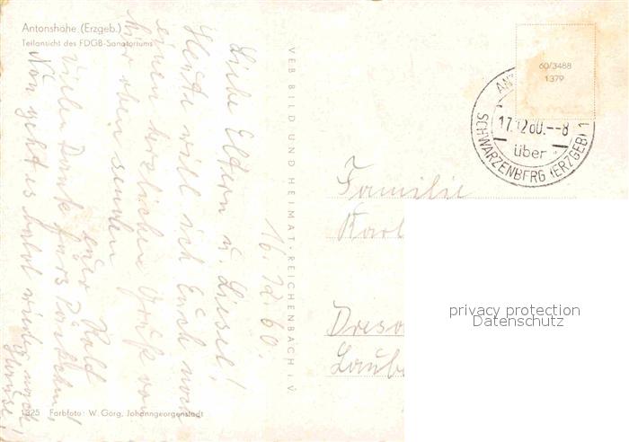 72854842 alte Postkarte Antonshoehe Breitenbrunn FDGB-Sanatorium postalisch gelaufen Erhaltung siehe scans [AndreD76] KatCode: 11110014191090