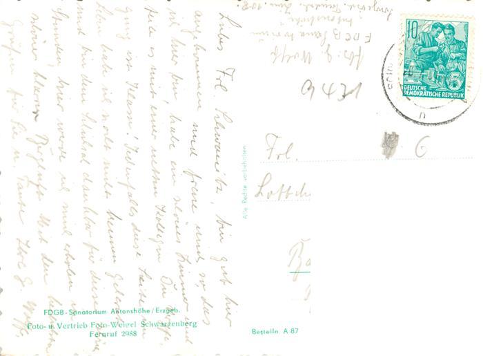 73907602 Antonshoehe Breitenbrunn FDGB Sanatorium Antonshoehe postalisch nicht gelaufen Erhaltung siehe scans [FriedD77] KatCode: 11110014191090