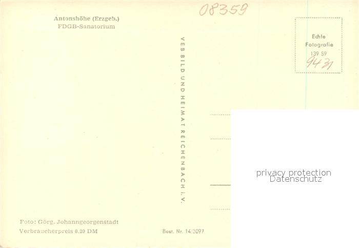 73566073 Antonshoehe Breitenbrunn FDGB Sanatorium postalisch nicht gelaufen Erhaltung siehe scans [FriedD77] KatCode: 11110014191090