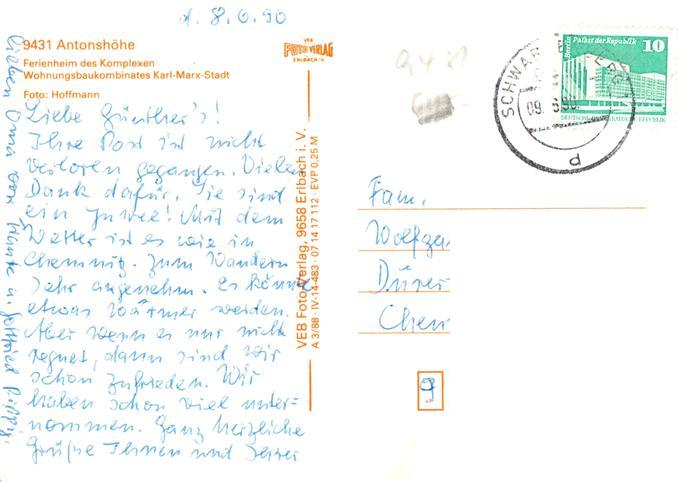 73907583 alte Postkarte Antonshoehe Breitenbrunn Ferienheim des Komplexen Wohnungsbaukombinats Karl Marx Stadt postalisch gelaufen Erhaltung siehe scans [FriedD77] KatCode: 11110014191090