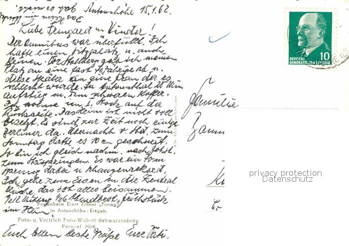 72729560 alte Postkarte Antonshoehe Breitenbrunn Ferienheim Ernst Zinner Fimag postalisch gelaufen Erhaltung siehe scans [FriedD77] KatCode: 11110014191090
