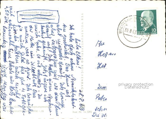 72335866 alte Postkarte Antonshoehe Breitenbrunn mit Rittersgruen und Fichtelberg postalisch gelaufen Erhaltung siehe scans KatCode: 11110014191090
