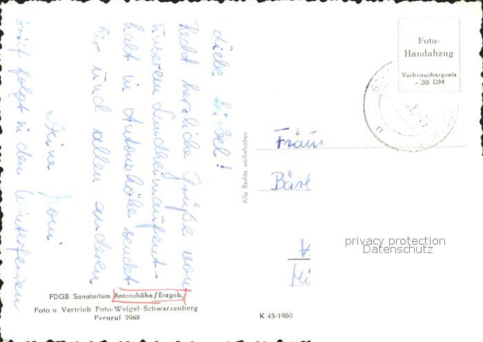 72368464 alte Postkarte Antonshoehe Breitenbrunn Sanatorium postalisch gelaufen Erhaltung siehe scans KatCode: 11110014191090