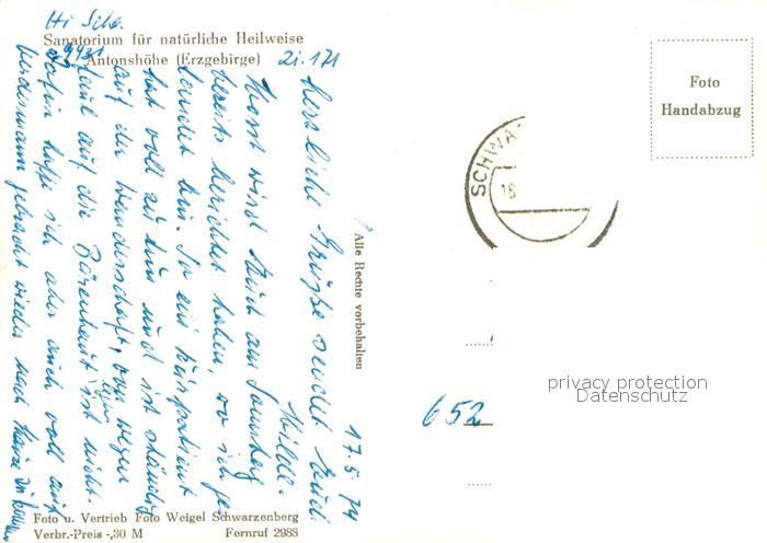 73669169 alte Postkarte Antonshoehe Breitenbrunn Sanatorium fuer natuerliche Heilweise postalisch gelaufen Erhaltung siehe scans [FriedD77] KatCode: 11110014191090