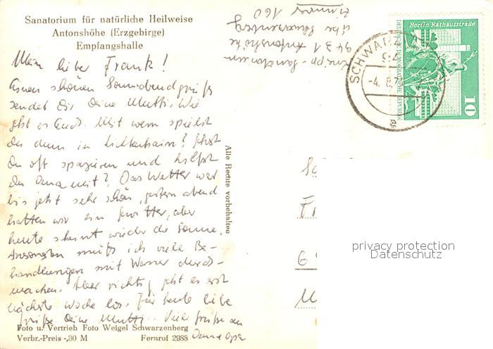 73292851 alte Postkarte Antonshoehe Breitenbrunn Sanatorium fuer natuerliche Heilweise postalisch gelaufen Erhaltung siehe scans [LiesaD40] KatCode: 11110014191090