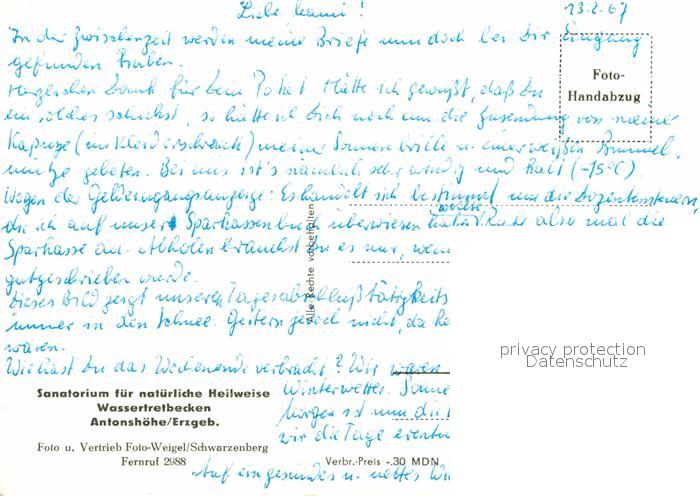 72729558 Antonshoehe Breitenbrunn Sanatorium fuer natuerliche Heilweise Wassertretbecken Handabzug postalisch nicht gelaufen Erhaltung siehe scans [FriedD77] KatCode: 11110014191090
