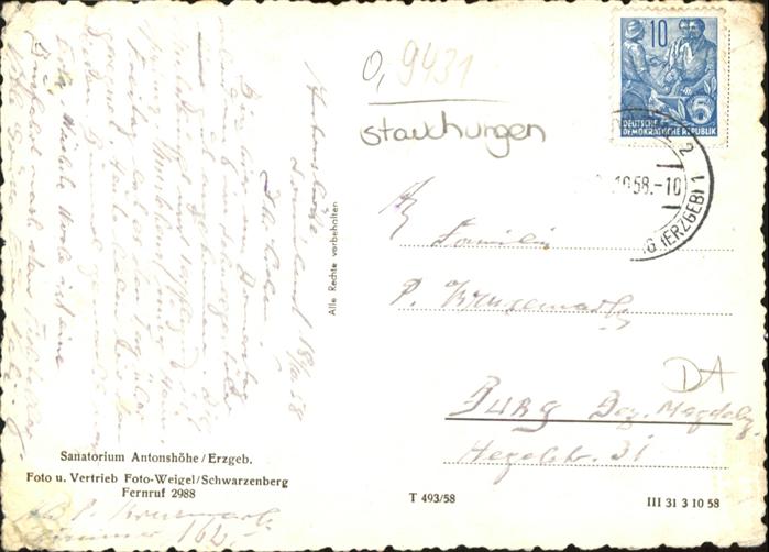 40974709 alte Postkarte Antonshoehe Sanatorium postalisch gelaufen KatCode: