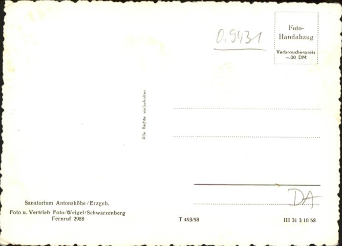 40974718 Antonshoehe Sanatorium postalisch nicht gelaufen KatCode:
