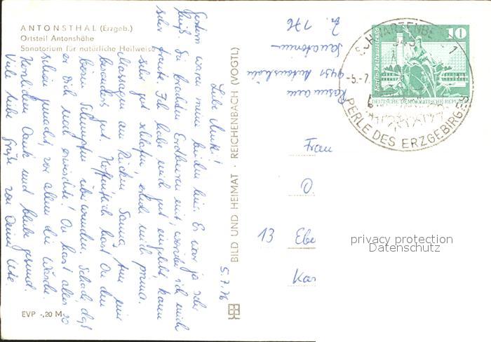 72091686 alte Postkarte Antonsthal Erzgebirge Antonshoehe Sanatorium postalisch gelaufen Erhaltung siehe scans KatCode: 11110014191090