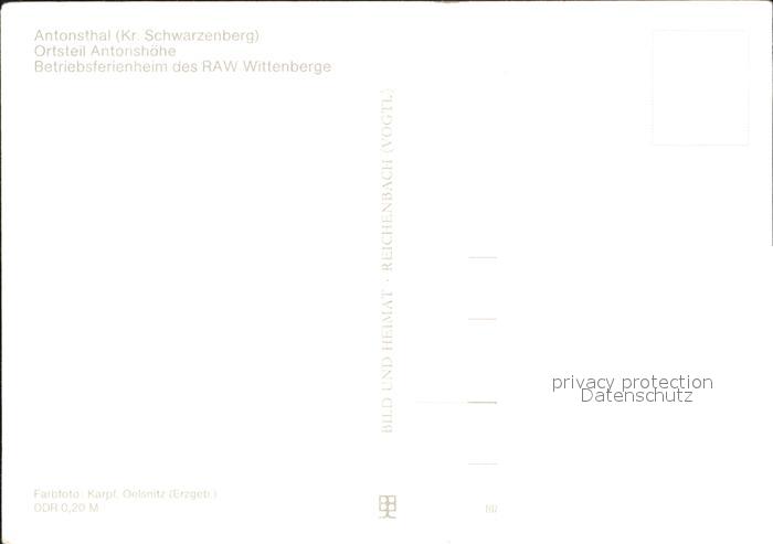 72323979 alte Postkarte Antonsthal Erzgebirge Betriebsferienheim des RAW Wittenberge postalisch gelaufen Erhaltung siehe scans KatCode: 11110014191090