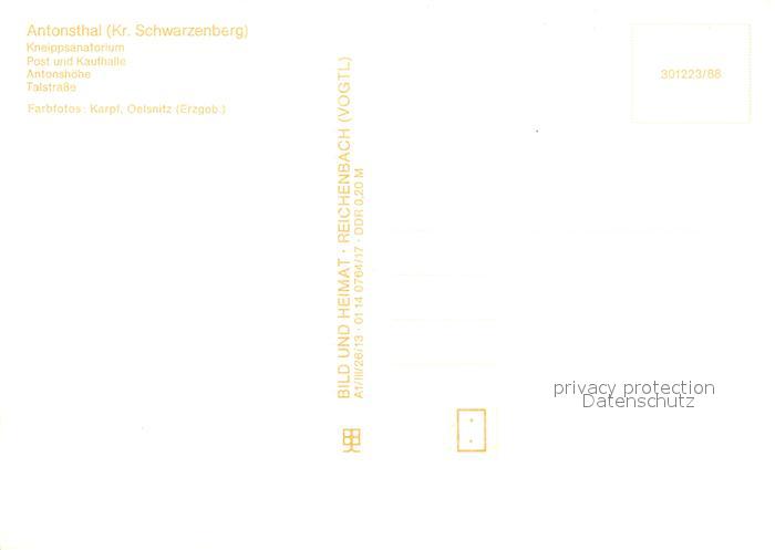 73125126 Antonsthal Erzgebirge Kneippsanatorium Post Kaufhalle Talstrasse postalisch nicht gelaufen Erhaltung siehe scans [PaolaD17] KatCode: 11110014191090