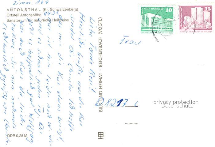 72987297 alte Postkarte Antonsthal Erzgebirge Sanatorium Antonshoehe postalisch gelaufen Erhaltung siehe scans [WerneD78] KatCode: 11110014191090
