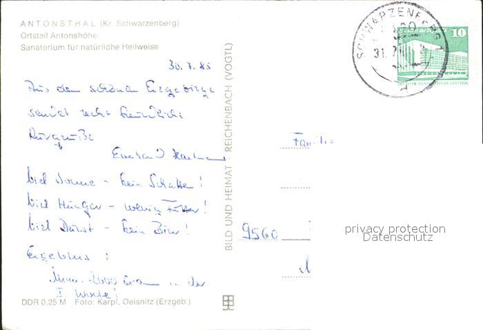 72335774 alte Postkarte Antonsthal Erzgebirge Sanatorium fuer nat Heilweise postalisch gelaufen Erhaltung siehe scans KatCode: 11110014191090