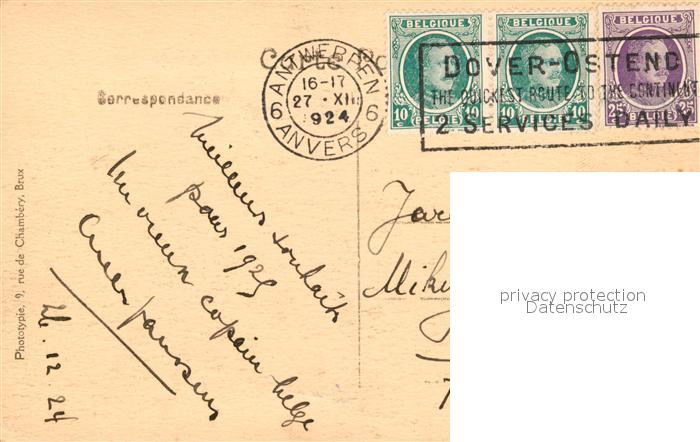 13338501 carte postale Antwerpen Anvers Aanlegplaats en Steen postalisch gelaufen Erhaltung siehe scans [WerneD78] KatCode: 11070011000017