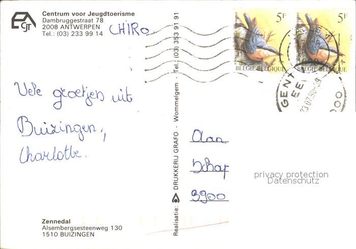 72113843 carte postale Antwerpen Anvers Centrum voor Jeugtoerisme Zennedal Buizingen postalisch gelaufen Erhaltung siehe scans KatCode: 11070011000017