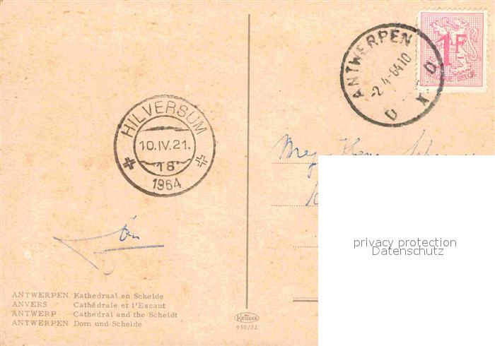 72663348 carte postale Antwerpen Anvers Dom und Scheide postalisch gelaufen Erhaltung siehe scans [AndreD76] KatCode: 11070011000017
