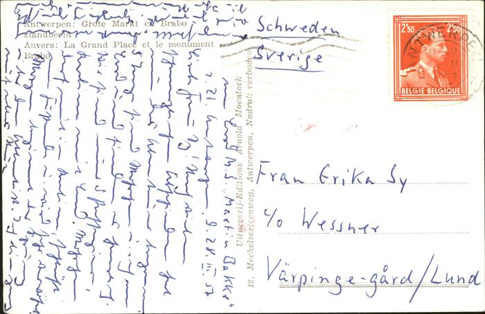 71058923 carte postale Antwerpen Anvers Grote Markt postalisch gelaufen KatCode: 11070011000017