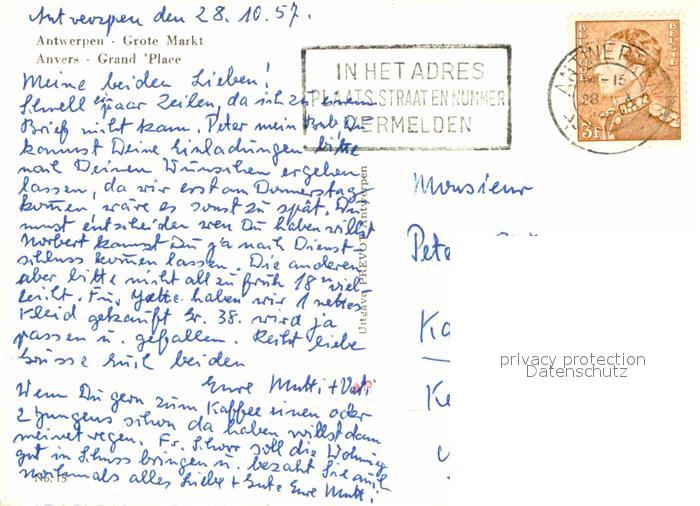 42738096 carte postale Antwerpen Anvers Grote Markt postalisch gelaufen Erhaltung siehe scans [WerneD78] KatCode: 11070011000017