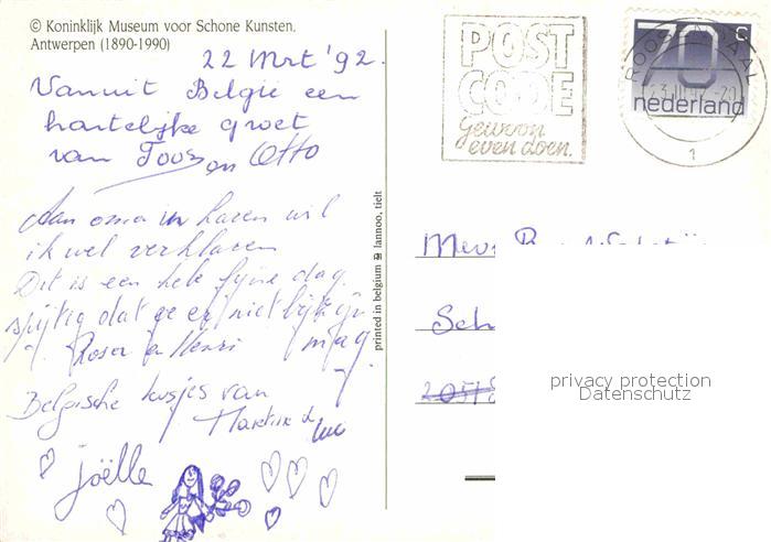 72860081 carte postale Antwerpen Anvers Koninklijk Museum voor Schone Kunsten postalisch gelaufen Erhaltung siehe scans [FriedD77] KatCode: 11070011000017