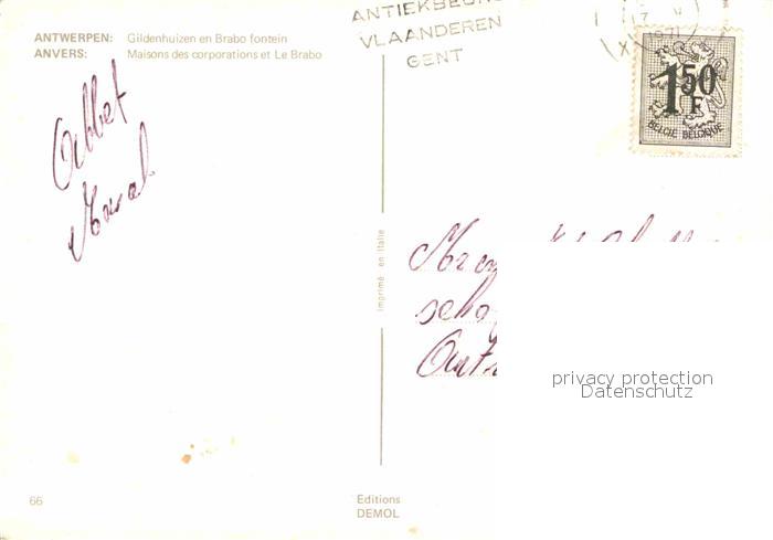 72875629 carte postale Antwerpen Anvers Maisons des corporations et le Brabo postalisch gelaufen Erhaltung siehe scans [FriedD77] KatCode: 11070011000017