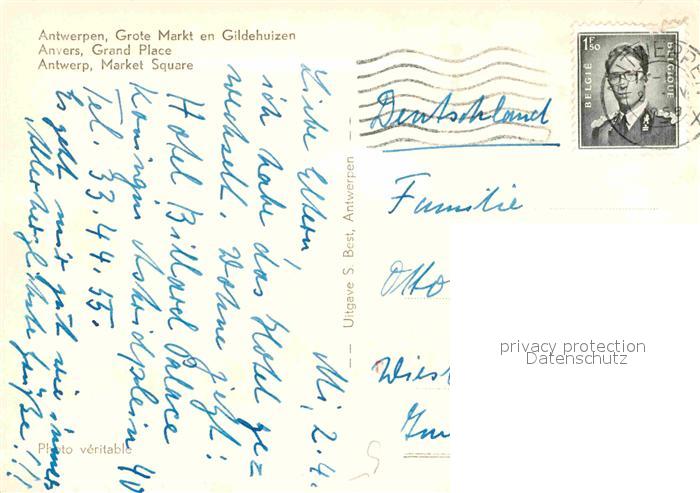 72762142 carte postale Antwerpen Anvers Markt en Gildehuizen postalisch gelaufen Erhaltung siehe scans [WerneD78] KatCode: 11070011000017