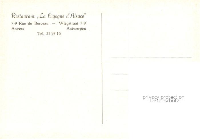 73764536 Antwerpen Anvers Restaurant La Cigogne d’Alsace Bar postalisch nicht gelaufen Erhaltung siehe scans [WerneD78] KatCode: 11070011000017