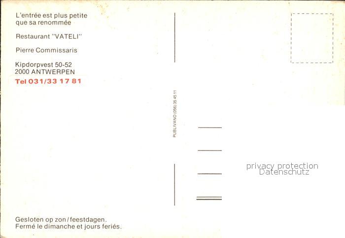 72442751 Antwerpen Anvers Restaurant Vateli postalisch nicht gelaufen Erhaltung siehe scans KatCode: 11070011000017