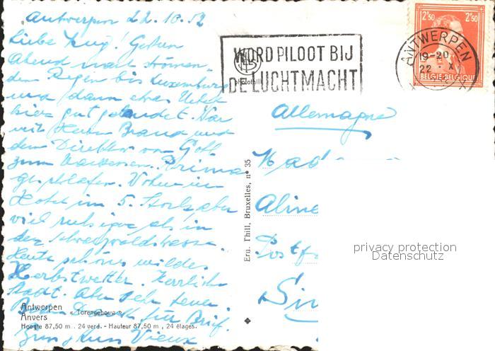 12021092 carte postale Antwerpen Anvers Torengebouw postalisch gelaufen Erhaltung siehe scans KatCode: 11070011000017