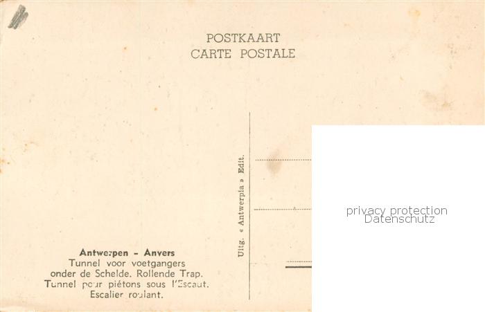 73780970 Antwerpen Anvers Tunnel voor voetgangers onder de Schelde Rollende Trap postalisch nicht gelaufen Erhaltung siehe scans [WerneD78] KatCode: 11070011000017