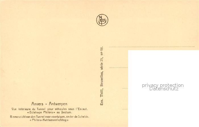 73336204 Anvers Antwerpen Tunnel postalisch nicht gelaufen Erhaltung siehe scans [FriedD77] KatCode: 11070011000017
