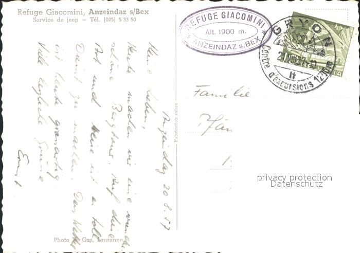 11644679 alte Postkarte Anzeindaz Refuge Giacomini Alpes Vaudoises postalisch gelaufen Erhaltung siehe scans KatCode: 11470240755778