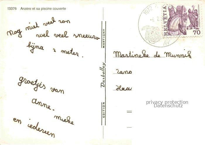 34143165 alte Postkarte Anzere Herens VS et sa piscine couverte en hiver postalisch gelaufen Erhaltung siehe scans [FriedD77] KatCode: 11470230710466